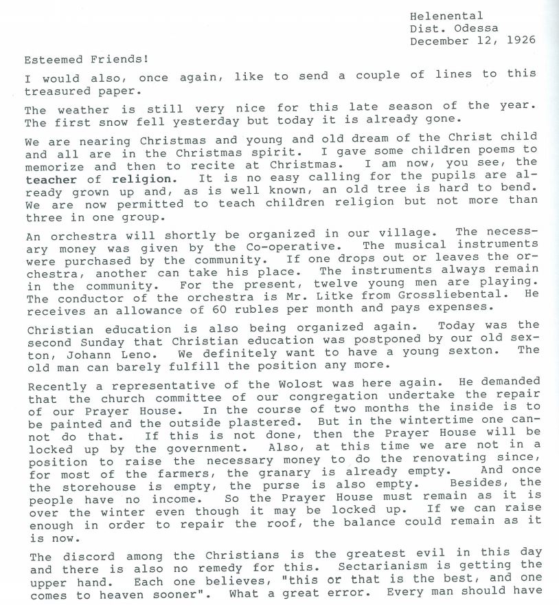 The Helenental Letters by Elisabeth (Elise) Grenz