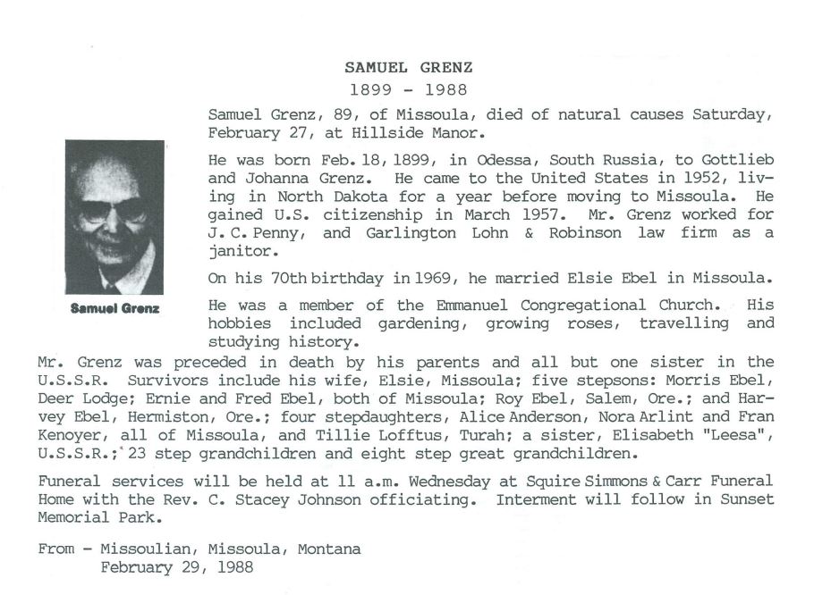 GRENZ FAMILY TREE |