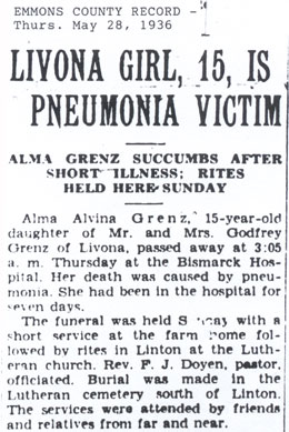 Alma died of pneumonia at the age of 15 years and almost 8 months.  She had been confirmed in the Lutheran Church in the Spring of 1936, shortly before she died.