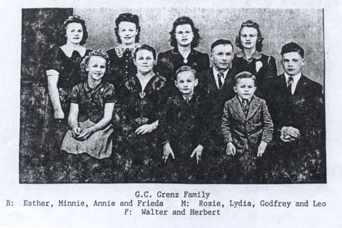 After marrying Lydia Schiermeister in 1919, the homestead continued to grow into a family of ten children.  Farming and hardships went hand-in-hand.  In 1929, Godfrey hauled all his grain to the elevator to make a land payment and put the money in the bank late one afternoon, only to come back the next morning to find that the bank had failed.  But, as stubborn as Germans are, he some how endured.