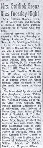 "Mrs. Lydia Grenz's brother who resides near Wishek is working for his brother-in-law, Gottlieb Grenz, at present.  Gottlieb is getting ready to move on his own farm."