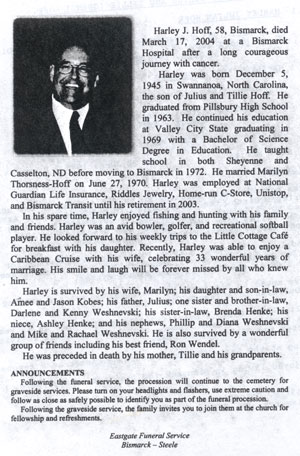 Harley was born in North Caroline while his dad was in the service.  After Harley's birth, the family moved to the Valley City area.  Later they moved to Pillsbury, ND where Harley graduated from High School.  He attended Valley City State College and graduated in 1969.  After graduation, Harley taught school for three year.