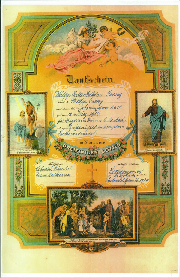 was baptized 13 June 1926 in the Hampton Lutheran Church in the name of the triune God.
