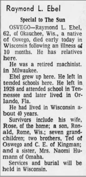 These Volga German ancestors are interesting to me in part because they are relatively unknown and were a part of the family far removed geographically and culturally in large parent, even from my own grandfather and my mom and her siblings. It seems Raymond Ebel had some sort of falling out with his family and I don't know that he ever returned to Kansas. He was said to be a fairly angry man. His life was hard and did not turn out how he wanted. My grandfather left his parents home before he was done with high school due to the conflict there. At one time, Raymond and Rose had filed for divorce, when my grandfather was still a toddler, but never followed through with that. Ronald essentially became part of his wife's family, who were dominated by the Irish maternal side of that family. My grandfather kept everything, which is why we have boxes of family papers and photos. He always wanted to know where his grandfather Adam had come from, but of course we never found out while he was still living