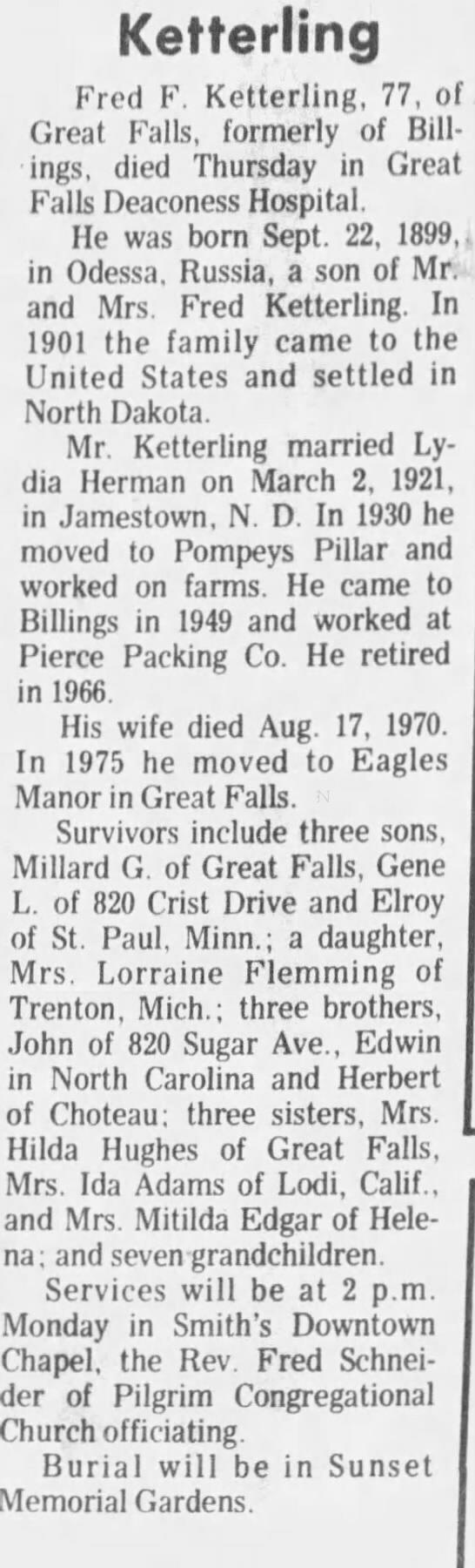Fred F Ketterling  - Back