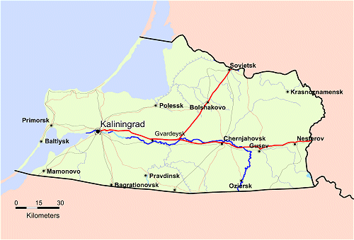 the "Blue Arrow" railway line from Kaliningrad to Svetlogorsk.