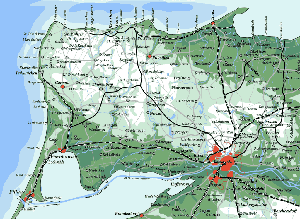 (now Kaliningrad). The highest point, 360 feet, is found twelve
