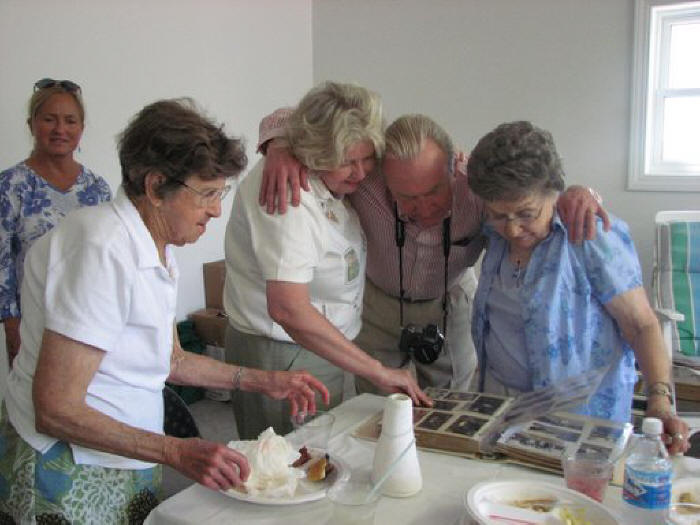 chowing down and looking at photo albums at Marvin's farm - Nancy, Gloria, Vera, David, Lorraine