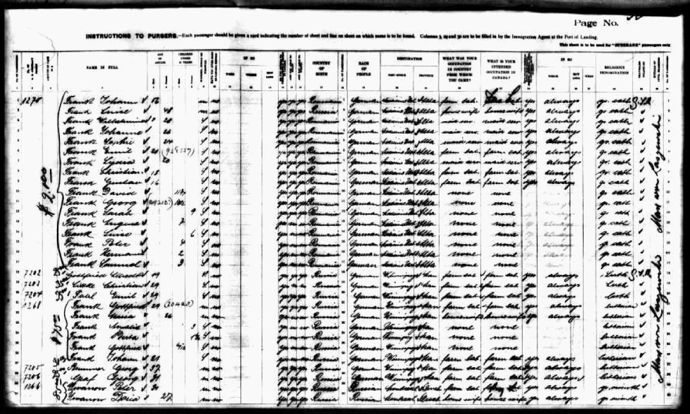 Arrival Record on Vessel Hannover, arriving 19 April 1913 - Destination Medicine Hat, Alberta Canada