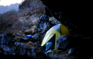 tent under a huge rock where for hundreds of years people